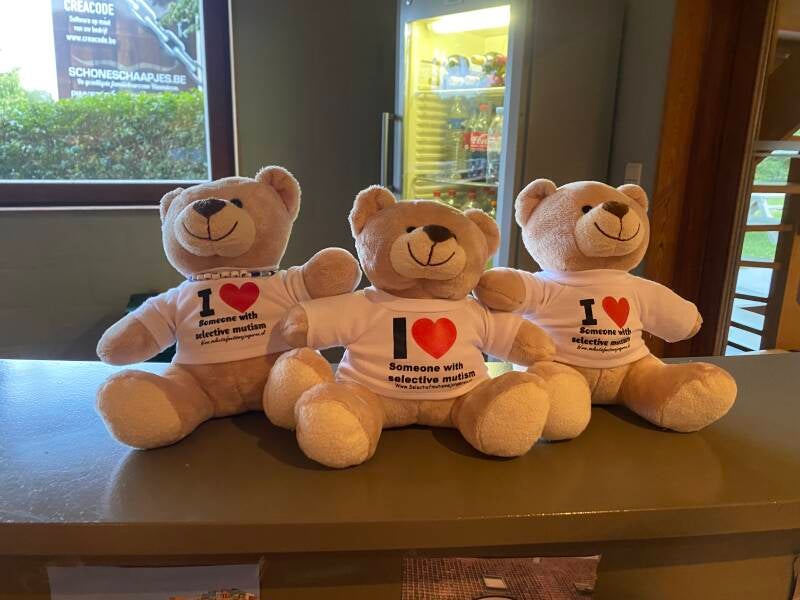 Om andere met selectief mutisme te steunen. Nemen we zoveel mogelijk onze beertjes mee.